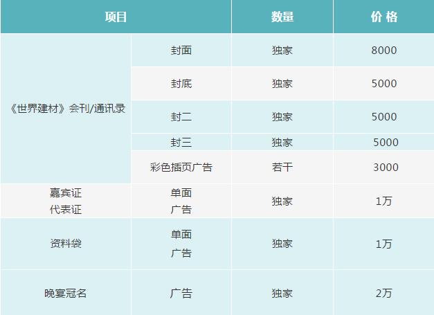 1、會議贊助:為廣泛宣傳先進技術,打造行業(yè)品牌,歡迎中外知名廠商協辦會議。會務組將在會議通知、網站、媒體廣告、會議消息、會議背景板、會議場地等媒介上顯著標明協辦單位名稱,同時將為協辦單位免費提供一版論文集彩色宣傳頁廣告,會議期間免費提供產品推介活動,安排展示場所并在會議上做專題報告,對企業(yè)的產品進行宣傳或在《世界建材》雜志和中國建材技術網上刊登廣告。協辦會議不低于3萬元,根據費用情況,提供相應或增值服務。提供會議禮品、辦公用品贊助,請及時與會務組取得聯系。