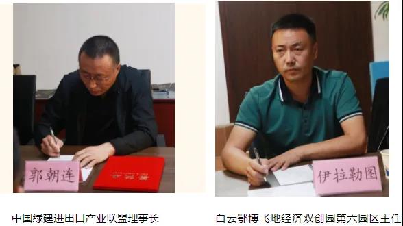 情報(bào)所·中綠建進(jìn)出口產(chǎn)業(yè)聯(lián)盟理事長郭朝連與白云鄂博飛地經(jīng)濟(jì)雙創(chuàng)園第六園區(qū)主任伊拉勒圖雙方代表簽訂了戰(zhàn)略合作協(xié)議。